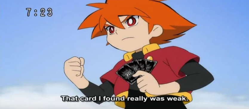 Not as ridiculous as the last one so thankfully my spirits are high, but this time the episode seemed to gloss over a few things in the first fight, like the existence of beatbeetles on Striker’s field at arbitrary times, or the missing Skulldevil on Card Sensei’s own field.