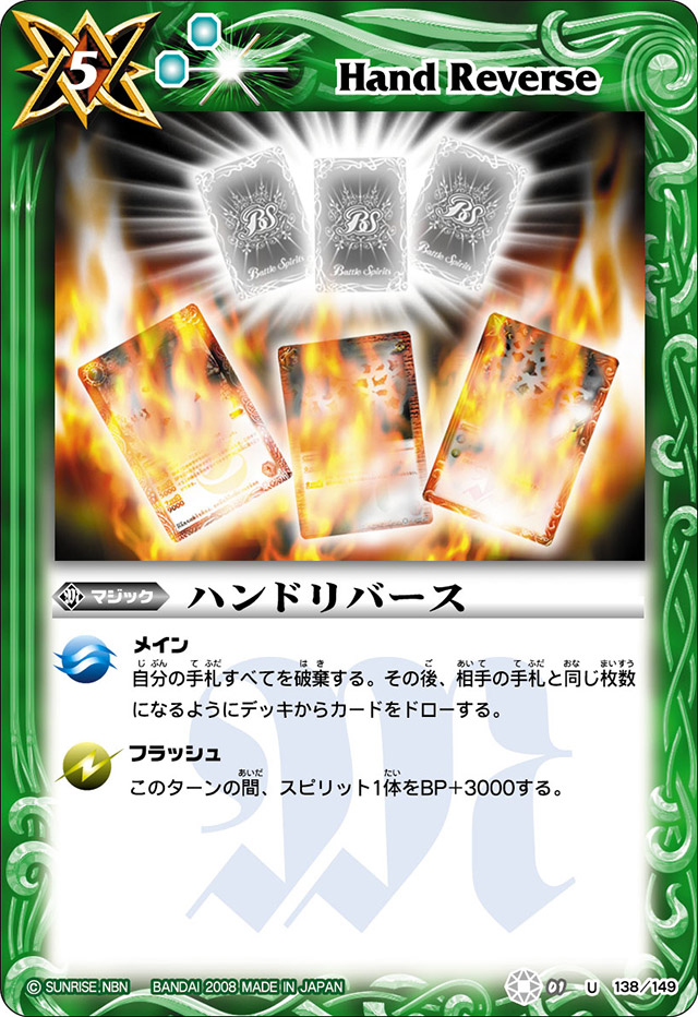 His deck is an Aggro-type deck, which features many Spirits of high BP, and his strongest Spirits wield the powerful Clash Keyword, forcing the enemy to block when they may rather take from the life when handling high BP attacks. His single-minded preference for the keyword earned him the title Clash King.