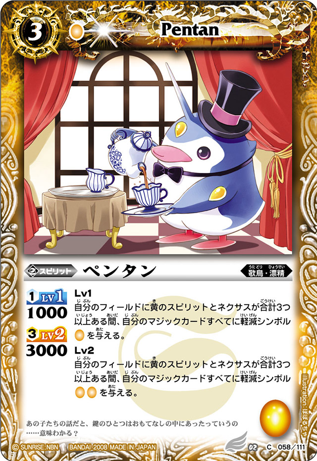 The HellSacred Gungnir Leon used in one episode is also one such card. In practice the best Tribute spirits need cards of cost higher than 6, but Blacktaurus is rare in that it only needs a Cost 3.