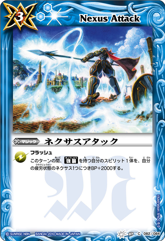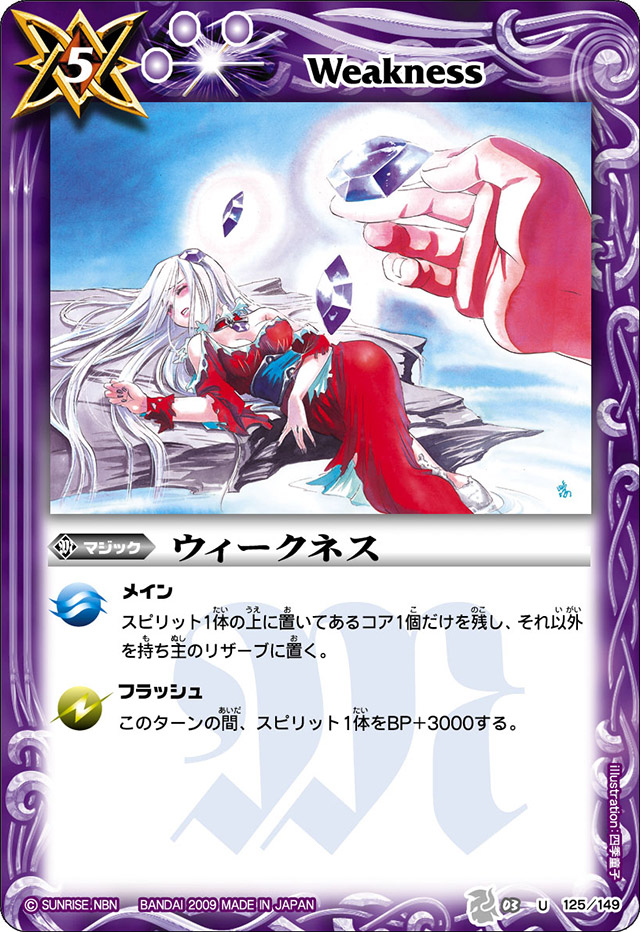Like an indomitable King, he leads his Silver Knights into battle, clad in armor, and fitted with weapons. Yuuki uses a Control strategy, sending out Spirits coated with the Armor Keyword, granting them immunity to effects of a given colour. Allowing them to act independantly of the opponent’s actions, in addition to returning the opponent’s spirits to the hand.