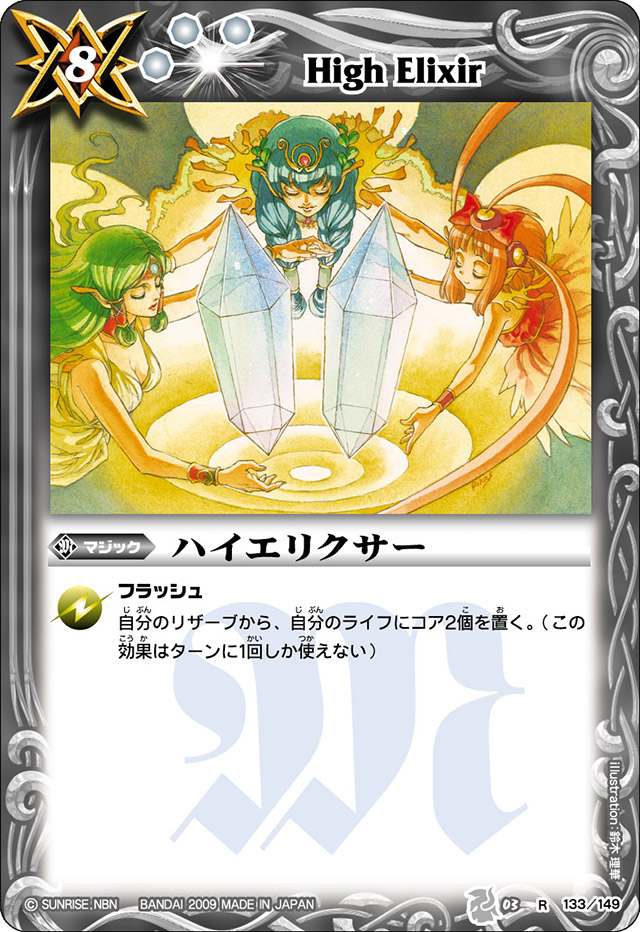 Anyway, the important thing here is Yuuki’s other 2 cards, he has High Elixir and Mist Curtain, meaning he can blank one Spirit’s ability to damage his lives, and he can restore 2 of them.