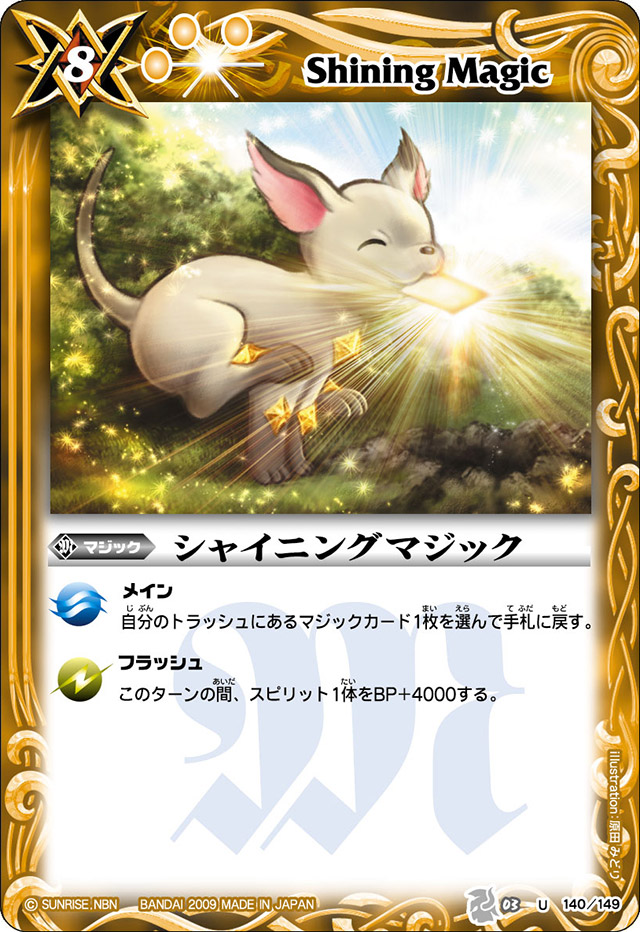 His deck is constructed of his favourite cards, typically beautiful female spirits, and his strategy favours the Light keyword, allowing him to continuously re-use Magic during the attack step. His mastery of the keyword earned him the title of Noble Youth of Light.