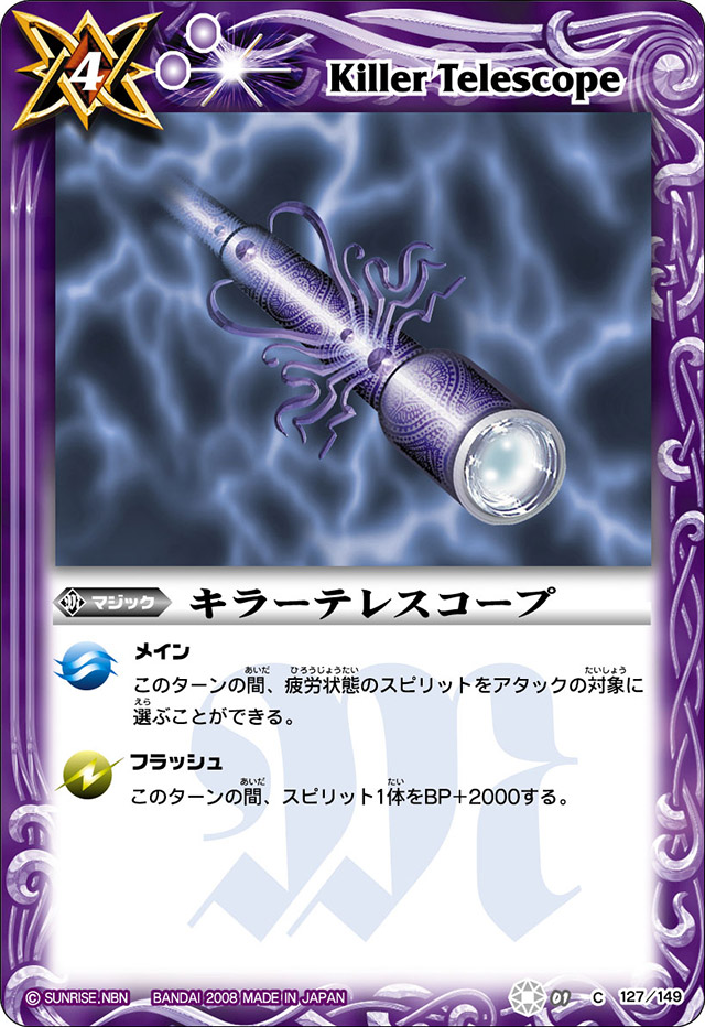 This inclusion’s a bit odd in Dan’s deck, but anyway this Cost 4 magic has a dual-use, during the Main Step it can return 3 Terra Dragon Spirits from the Trash to the Hand, and when used as a Flash (which can also, coincidentally, be during the Main Step), a Spirit gains 3000 BP.