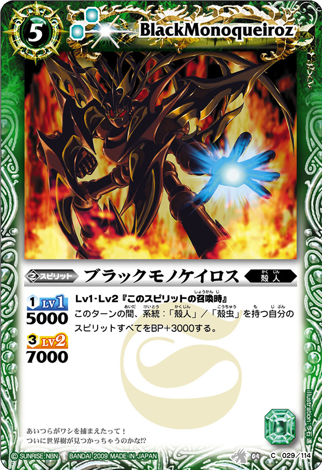 Well that’s concerning, BlackMonoqueiroz will boost all Shellman or Shell Insect Spirits by 3000 BP for the turn it’s summoned.