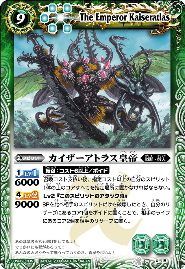 Kaiseratlas was a powerful X-Rare from the previous show, Toppa Bashin, it appeared during the tail end of the series, I’ll review it again once it appears but its certainly one of the easier Tribute Spirits to toss out on account of it’s home colour.
