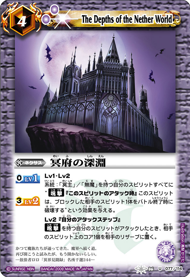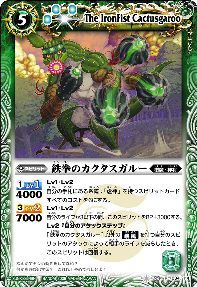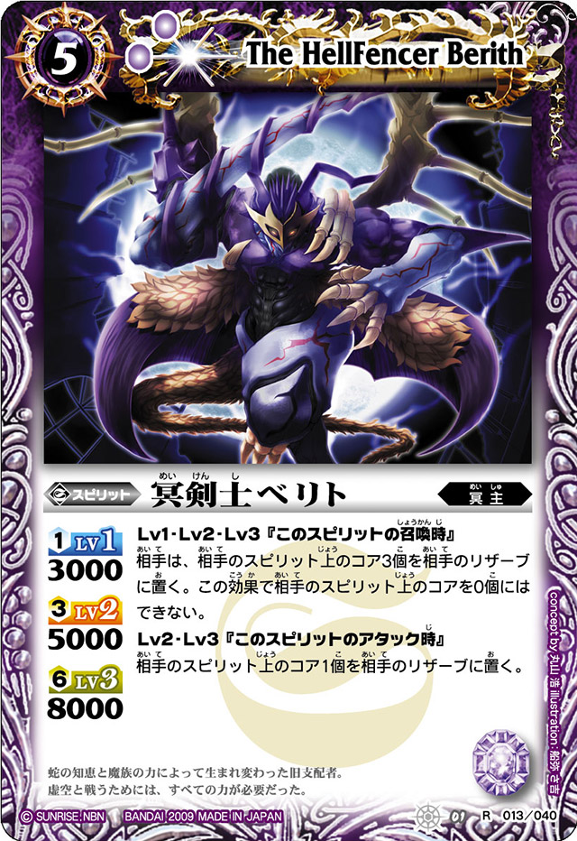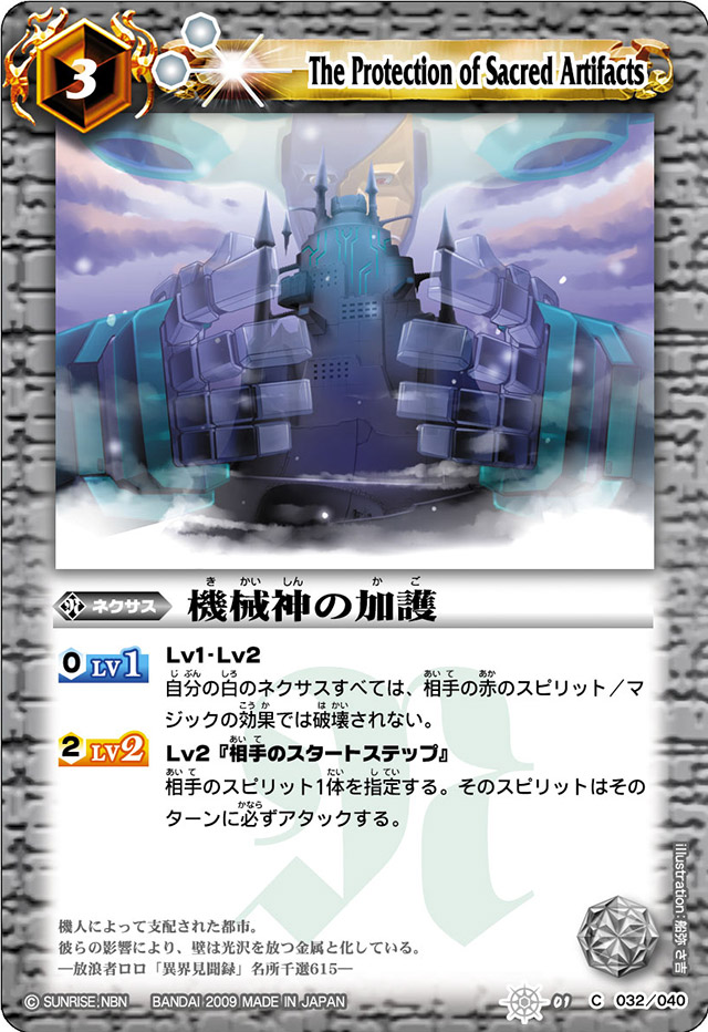 And finally, the important effect, at Level 3, which requires a whopping 6 core to maintain but comes in at 11000 BP, allows any Clash spirits to target attack, this is pretty big as one of the main issues of Clash is that while you can force the opponent to block, you don’t get to select what they give up, which can cause you issues.